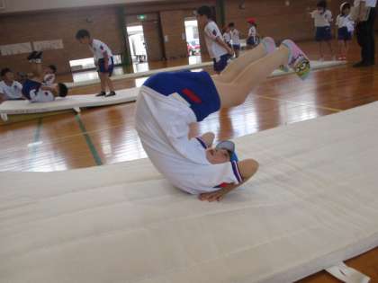 足の揃え方や手のつき方が上達し、「前転」や「後転」といった発展技に、自然とチャレンジしていました。