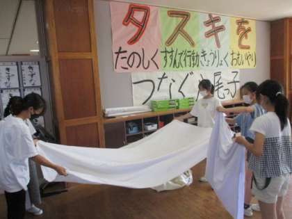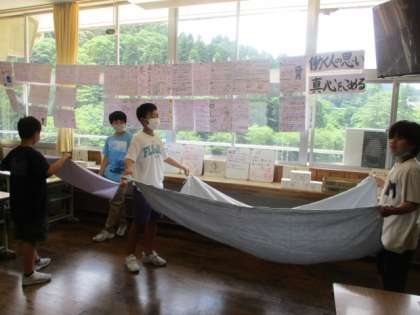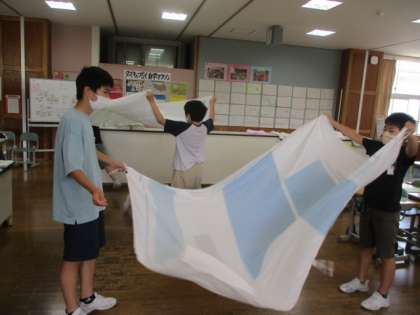 部屋ごとにシーツのたたみ方を練習しました。何度も練習するうちにコツをつかんだ様子でした。