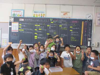 校外学習の翌日、たくさんのことを見て学んだことをみんなで共有しました。友達に伝えたいことがたくさんあったようで、みんなすすんで発表することができました。見学中に浮かんだたくさんの疑問も、みんなで話し合いながら解決することができました。