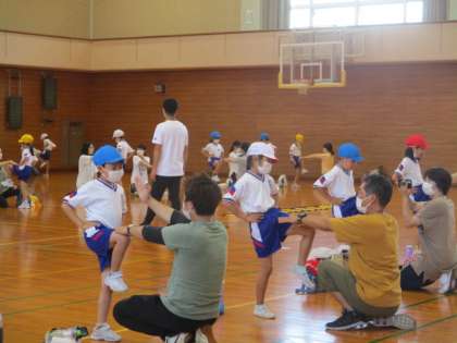 子供たちは、「50メートル走のタイム伸びるかな!」「お家の人が来てくれるよ」と、朝からわくわくしていました。