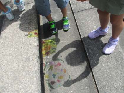 窓辺に掲示されていた作品をもち、外に遊びに行きました。