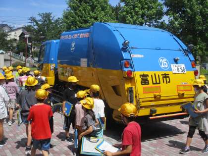 3R推進スクールを行いました。3Rについて学んだり、ゴミ収集車を見学したりしました。