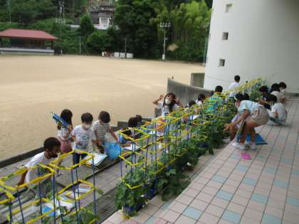 1年生 アサガオのつるがのびたよ