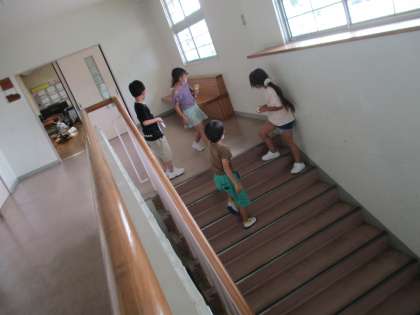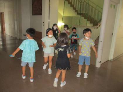 今回の学習では、「長さをうつしとってくらべる」ことを学びます。そこで、グループに分かれて学校内を回り、調べたい長さを紙テープにうつしとる活動を行いました。「○○がいいんじゃない?」「○○のながさにしようっと」など、楽しみながらいろいろな長さを調べることができました。
