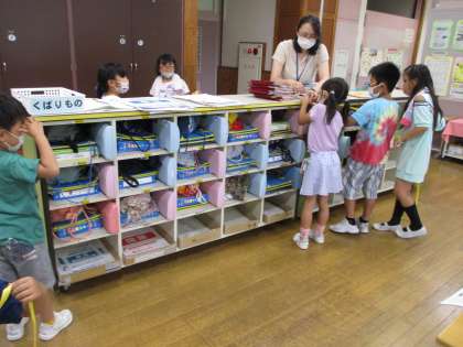 算数科では、1年生は長さを比べる学習をしています。今日は、教室にある物をテープで測りました。二人でペアになり、互いに端を押さえたり鉛筆で印を付けたりしました。最後に、黒板にテープを貼って比べることで、いろいろな物の長さの違いが分かりました。