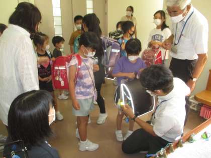 このことを受けて学校では、近隣の地区に住む児童のランドセルに、今付いている熊鈴の他に、学校所有の大きな音の鳴る熊鈴を追加して装着しました。屋内では、かなり大きな音に感じられると思いますが、ご理解とご協力をお願いします。