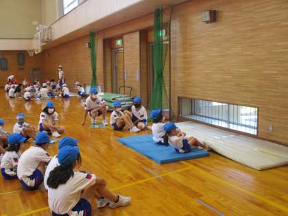1年生さんのスポーツテストのサポートをしました。コツを教えたり、やさしく励ましたりする姿がありました。