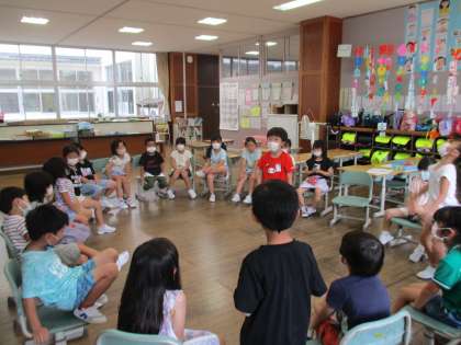 同じダンスでも、途中にじゃんけんを入れたり、円になって動いたりする工夫を取り入れていて、楽しかったです。ダンスの後は、椅子をできるだけ離して、椅子取りゲームを行いました。