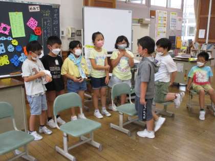 7月20日に1学期がんばったね集会と6・7月の誕生会をしました。