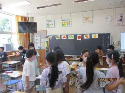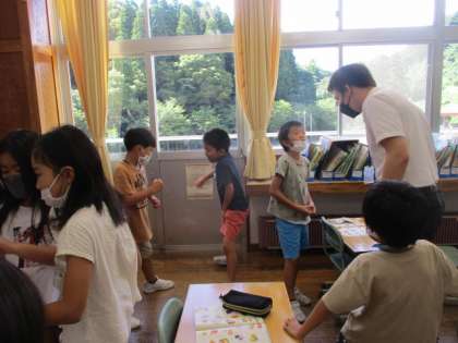 外国語活動の様子です。楽しそうに友達と話しています。先生よりも早口で英語がスラスラ言えてびっくりしました!