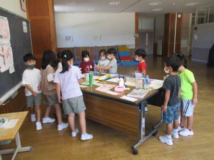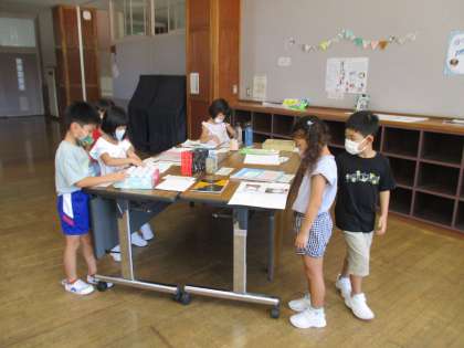 1年生は、学級単位で、2年生の皆さんの夏休み作品展の作品を見せてもらう時間を取りました。