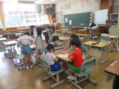 2学期に担当する学級の仕事(係活動)について、それぞれのグループで話し合い、仕事の目当てや内容などを決めました。