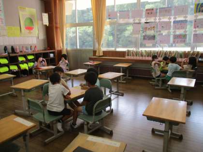 今回は、1学期に書けなかった係のポスターつくりに挑戦しました。それぞれのグループで決めた目当てや仕事の内容などを1枚の用紙にまとめ、最後にそれぞれのメンバーの写真を貼って飾り付けることができました。
