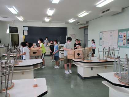 いろいろな大きさの箱に穴を開け、側面をたたくと、まるで丸い弾が飛んでくるかのような感覚で空気が飛び出してきました。