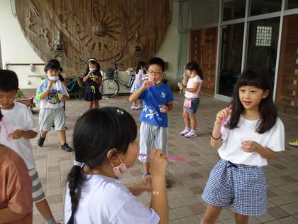 松組も、生活科の学習でシャボン玉遊びをしました。