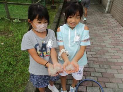 子供たちが見せてくれたのは、うさぎたちの体にもこもことついている「毛」です。