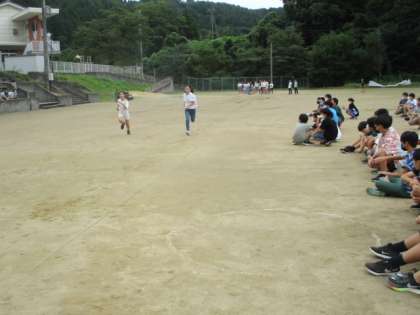 運動委員会のイベントで、5年生と50m走対決しました。チャレンジ陸上記録会に向けてエールももらい、励みになりました。