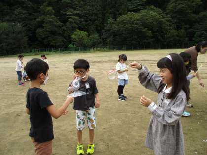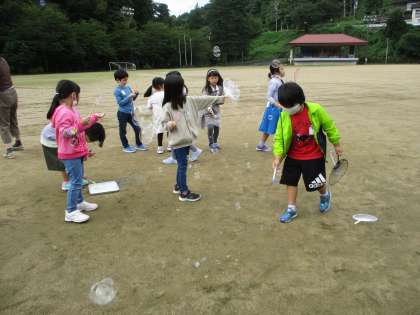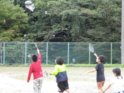 やってみると、なかなかうまくできないところもありましたが、慣れてくると、次々に綺麗なシャボン玉ができあがりました。