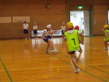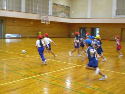 今日の体育科では、サッカーゲームを行いました。ルールや配置も覚えて、どの子もスムーズに動いていました。シュートが決まった瞬間、チームの仲間とうれしそうに喜び合い、笑い合う姿も見られました。
