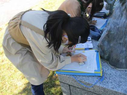 理科の学習で秋の桜の木を観察しました。少しずつ色が変わってきている葉の様子に気付きました。