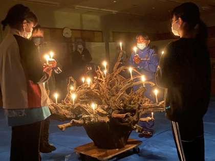 1日目の夜はキャンドルサービスをしました。レクリエーションで仲間と体を動かした後、みんなでろうそくの火を見つめて、今日の一日を振り返りました。