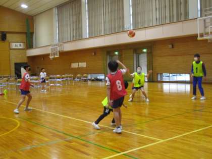 ドリブルはせずにパスでボールを回すというルールのもと、自分の動きを考えながら活動しました。
