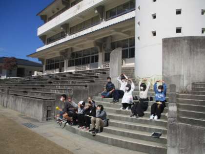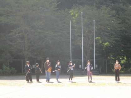 学習発表会に向けて、あとわずかになりました。子供たちは、仲間同士見合いながら改善するためのアイディアを出し合って取り組んでいます。ある日、「運動会の時みたいにグラウンドで声出ししようよ」との提案がありました。秋晴れの下、みんなで頑張っていました。
