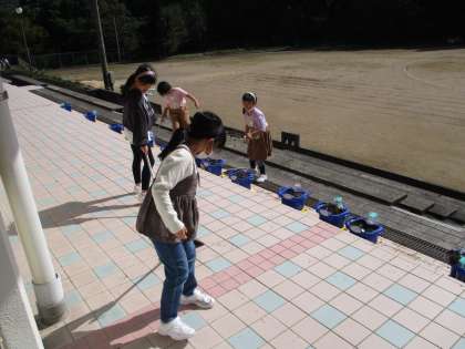 最後は、つるだらけになったベランダを自主的に掃除を始めるすてきな子供たちです。