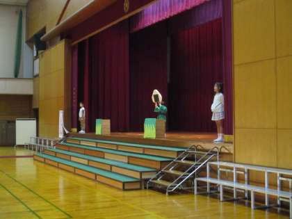 ステージ発表では、これまでの練習をしっかり出して、大きく、はっきりと伝えられるように頑張っていました。