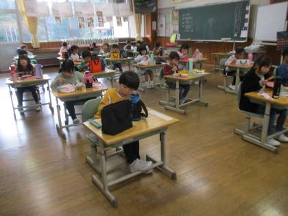 ステージ発表後、だんだん緊張が解けてきた子供たち。すぐに「お腹すいた〜」「早くお弁当食べたい〜」。お昼時間を心待ちにしながら、振り返りなどを行いました。