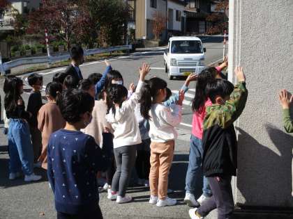 おわらが終わった後、樫尾小学校のみなさんをみんなで見送りました。