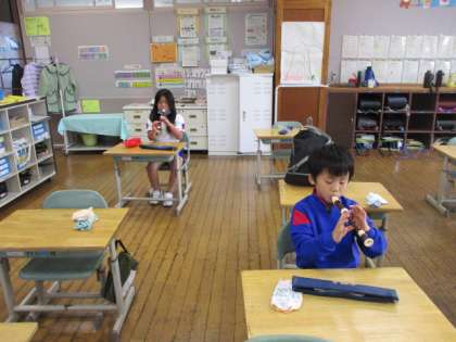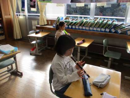 休み時間にリコーダーを吹く姿が見られました。息の強さに気を付けて、美しい音を出そうと、前回の音楽で学んだことをふまえて練習していました。いろいろな穴を押さえて、音の高さが変わるおもしろさに気付いていた子もいました。