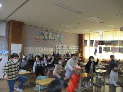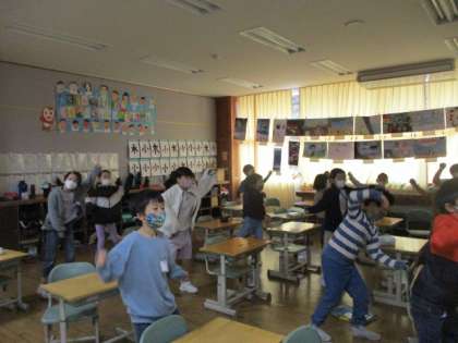 委員会の企画を学級で実施しました。動画を見ながら、健康について考えることができました。片足で立てるか、かかとを地面につけたまましゃがめるか、なども試してみました。振り返りでは、自分がこれからどんなことをがんばりたいかについて考えました。