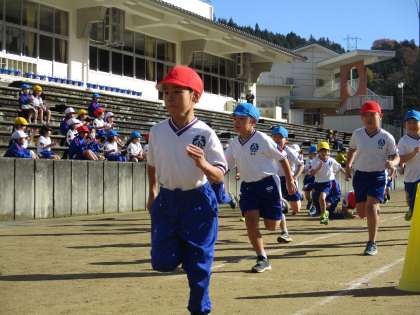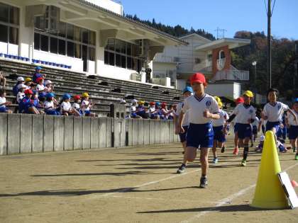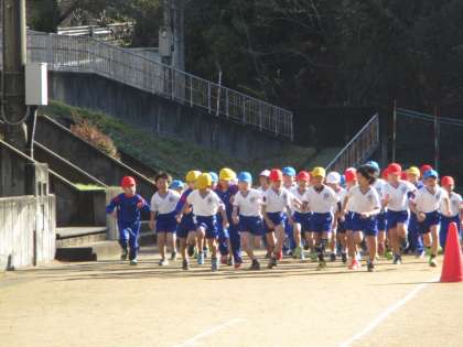 休み時間や朝の時間に練習をしてきた子供たちです。1人1人が自分の目標タイムを目指して走ります。