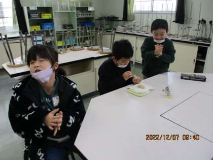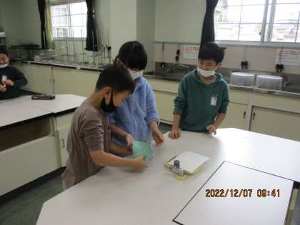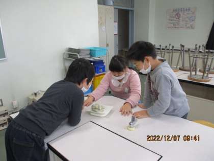 粘土になると、さらに自由に形を変えられることができ、平べったくしたり、細長くしたりといろいろな形になりました。量ってみると1g、2g重さが変わってきてしまいました。予想と違う結果について、粘土が手についたんじゃないかな、粘土を拾いすぎて余計に重くなったんじゃないかなと子供たちなりに原因を考えていました。