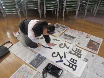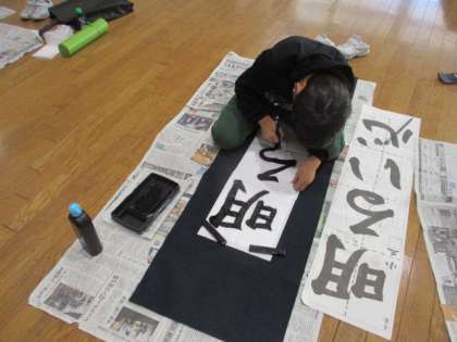 まずは手本の上に半紙を置いて、なぞり書きをしていきます。太さに気を付けて書きました。