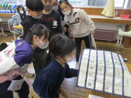 帰りの準備のときには、みんなが名札を入れながら、名札ケースがどれだけ重くなっていくかをみんなで見ていました。