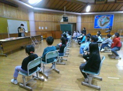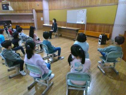 お話は、「だめといわれてひっこむな」というお話でした。子どもたちはお話に引き込まれ、じっと聞き入っていました。