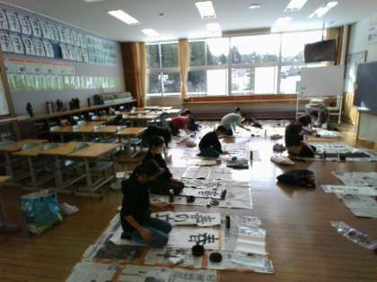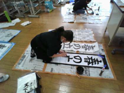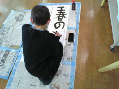 2時間目からは書き初めの練習をしました。今年の字は「春の立山」です。とくに「春」の字が難しい様子。一生懸命練習に取り組んでいます。