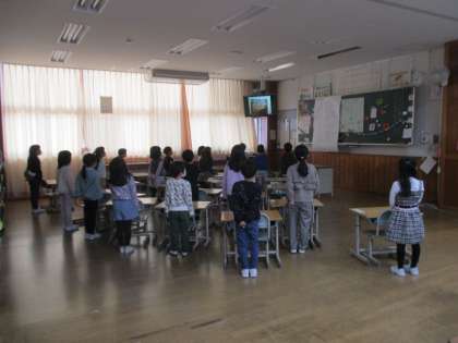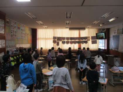 その後、一人一人に「あゆみ」を渡しました。ご家庭でご覧になられた際には、ぜひ個別懇談会などでお伝えしたことを思い出していただいて、子供たちをほめてあげていただきたいと思います。本当によく頑張った、大きく成長した、すばらしい2学期でした。ありがとうございました。