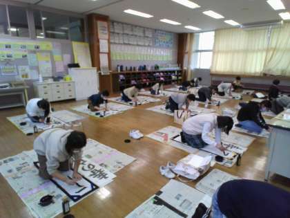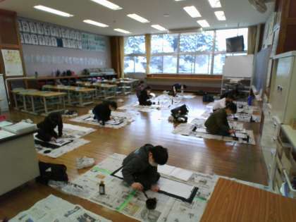 2時間目に書き初め大会を行いました。
