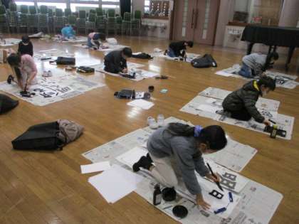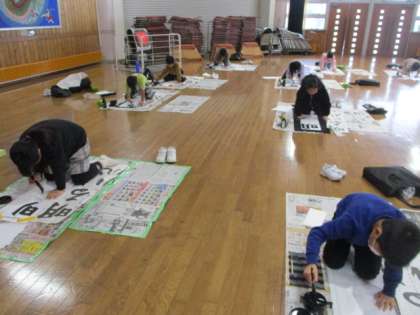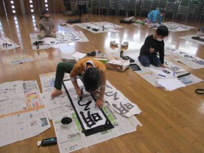 気持ちを落ち着けて、みんな静かに「明るい心」を書くことができました。字の形が整っていて、勢いがあり、おうちで一生懸命練習してきたのがよくわかりました。うまくできなかったという子もいたけれど、真剣に取り組んだことが立派なんですよ。