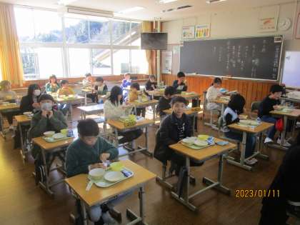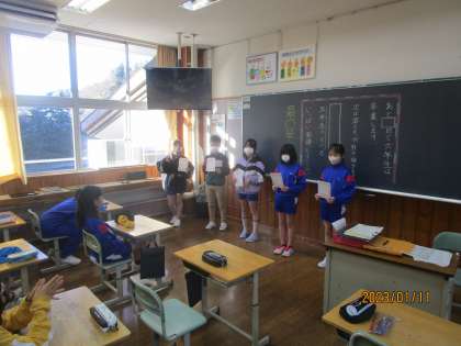 5年生 書き初め大会の表彰・発育測定・給食開始