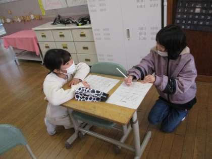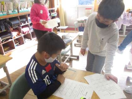 休み中の友達の様子や出来事についてお話ししながらビンゴに取り組む「冬休みビンゴ」をしました。