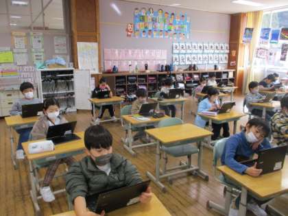 今日は、クロムブックを使って計算チャレンジに向けて練習をしました。クロムブックの扱いにも慣れてきて、だんだん速く計算できるようになってきました。そして、静かに集中して計算に取り組む姿は非常に立派でした。チャレンジテスト当日もがんばりましょう!