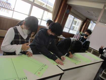 今日の算数科では、対策プリントをテスト形式で取り組み、自己採点しました。その中で、気付いたことや学んだことをファミリ−の振り返りシートに寄せ書き形式で書いていきました。仲間の振り返りからも学ぶことがあったようでした。その後、難問にチャレンジし、力を高めていました。
