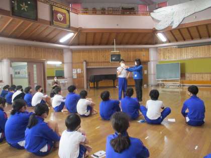 小学校生活最後の発育視力測定を行いました。養護教諭の先生から「スマホ首」について教えていただいた後、測定をしました。自分の成長や健康について見つめるきっかけになりました。