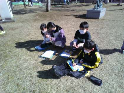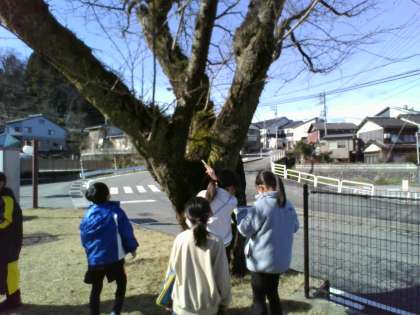 4時間目には、気温が寒くなってからのさくらの観察をしました。天候にも恵まれ、枝や幹の様子を詳しく見ることができました。