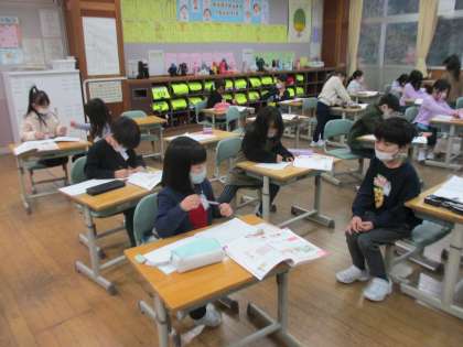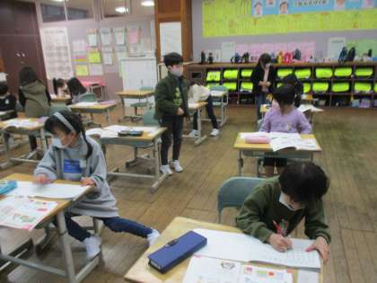 学習の最後に、じゃんけん陣取りゲームをしました。隣同士のペアで行ったのですが、とても盛り上がって楽しむことができました。ぜひご家庭でも、お子さんと一緒に取り組んでみてください。
