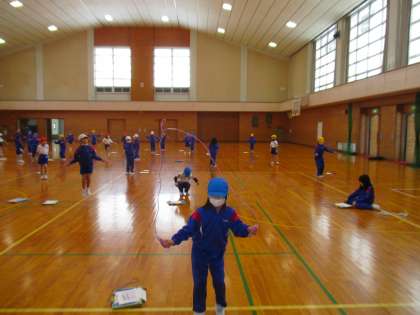 八尾小学校では、冬の運動として、縄跳び運動に取り組んでいます。